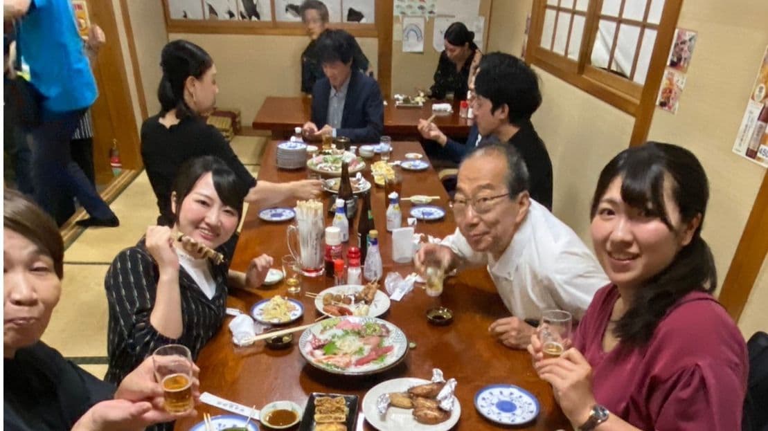 葬儀シーン撮影後は、居酒屋いのちゃんを借り切って圭一を囲んでイズモ社員の宴会シーンの撮影です。生と死をテーマにした中でクスリと笑いを誘うシーンの一つです。個性豊かなイズモ社員から今後どんな物語が紡がれていくのでしょうか。