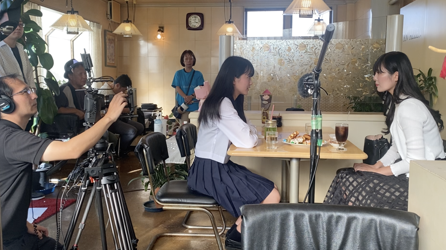 デンソーのDスクエアを借りての撮影。ロケーションんも良く今回もいい絵が撮れました。あやかと圭一の会話シーンですが、今回は長回しで一気に撮影しましたが、セリフを間違えることなく演じてくれました。喫茶店のお客にはスタッフがエキストラで参加。楽しい時間を共有できました。