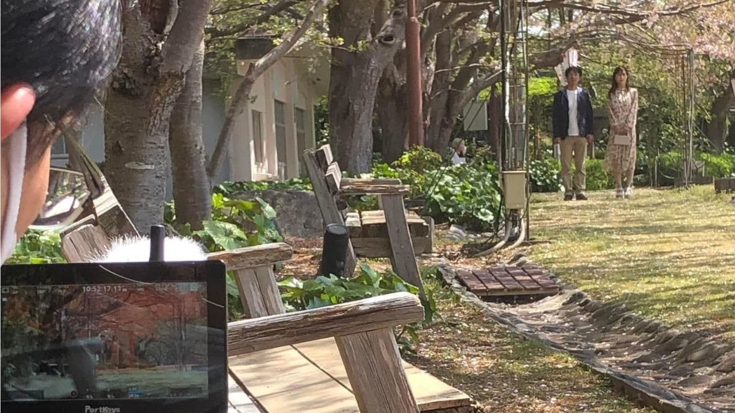 今日は蒲郡は西浦園地にてあやかと圭一がデートするシーンの撮影でした。 台詞は一切なく幸せな時間が静かに流れる切ないシーンをスライダーやクレーンを使って情緒的に描きました。 穏やかな好天に恵まれ、スタッフは桜舞い散る公園で楽しく撮影に臨めました。 4月のキャスト撮影は今日で終わり、次回は5月です。 クランクアップまでもう少しです。